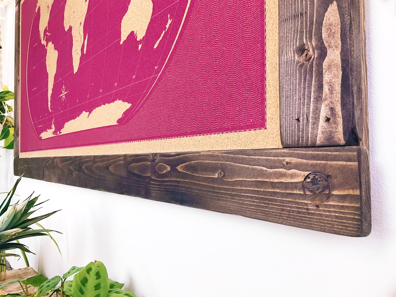 Hot-Pink World Map – Dark Oil-Stained Shipwrecked Frame