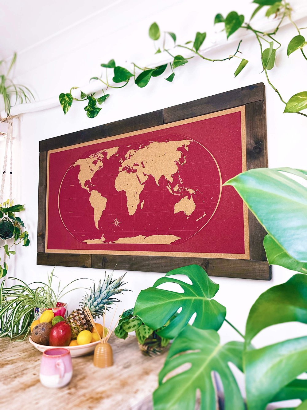 The meticulous design may go unnoticed, but these are skillfully and individually hand-pulled silkscreened maps, printed using water based inks for the finest detail and brightest colours possible on 100% sustainable cork, with a recycled pin-retaining softboard core. Designed with no location names our world map simply shows the longitude, latitude and equators, with country borders printed as finely as possible – so that at a distance you won't notice them, and up close you can see each country. They also feel great!